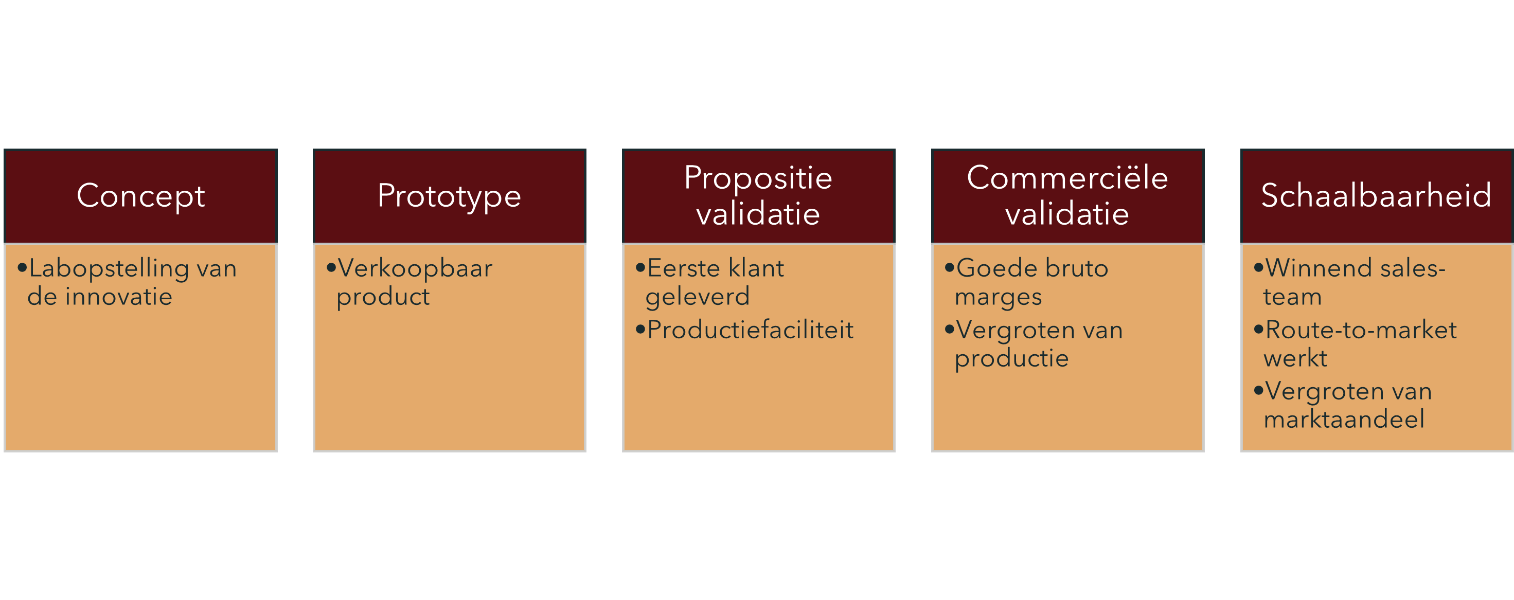 Start-ups ontwikkelen zich langs een aantal mijlpalen. Bij het bereiken van elke mijlpaal is een stuk risico weggenomen en daarmee wordt een investering aantrekkelijker voor financiers. Begrijp je het risico vanuit het perspectief van de investeerder? Het Kern-Groei Innovatieproces geeft je de inzichten die je nodig hebt.